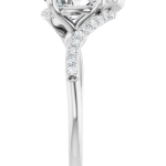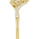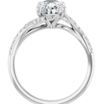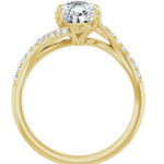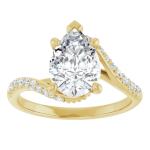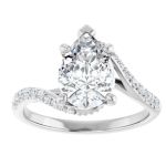 The Bailey ring features your chosen pear-shaped center stone set in refined prongs, complemented by a flowing bypass band adorned with delicate pavé diamonds. The curved design creates a sense of movement and balance, drawing the eye naturally around the stone while allowing light to flow beautifully from every angle. Elegant and expressive, Bailey blends soft femininity with modern detail for a truly distinctive look.