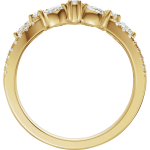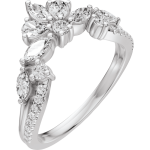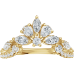 The Calista band features a sculpted, crown-like contour with marquise and round lab-grown diamonds arranged in a radiant, petal-inspired silhouette. The combination of shapes creates height and dimension, forming a striking yet balanced design.