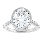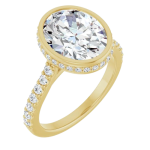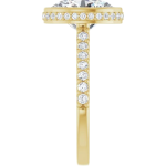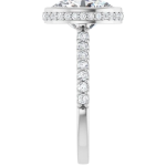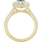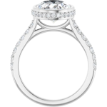 The Camille ring is a refined take on classic elegance, featuring your chosen center stone set in a sculpted cathedral setting with a delicate 2.1mm pavé band that enhances its brilliance without overpowering the design. A hidden diamond halo wraps subtly beneath the center stone, adding depth and radiance from every angle while maintaining a clean, elevated silhouette. Thoughtfully balanced with a low-profile basket and open gallery for maximum light, Camille blends modern structure with soft, romantic detail.