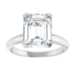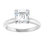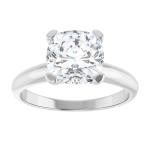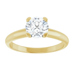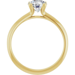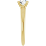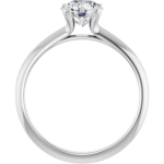The Charlie ring features your chosen center stone in a modern tension-style setting, designed to beautifully showcase the culet for a light, floating effect. Sculpted tab prongs add a clean, architectural touch, while the rounded 2.8mm band provides balance and subtle presence. Minimal yet striking, Charlie is a refined statement piece that highlights the diamond from every angle.