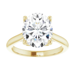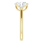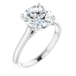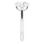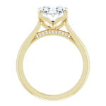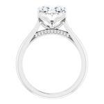 The Dahlia ring showcases the center stone of your choosing in a refined four-prong petal head, delicately sculpted to cradle the diamond with soft, floral-inspired elegance. Beneath, a shimmering diamond-accented bridge adds a hidden layer of brilliance, while the graceful cathedral setting and rounded 2.5mm band create a balanced, elevated silhouette. Romantic and timeless, Dahlia is designed to highlight your chosen stone with floral beauty from every angle.