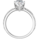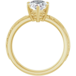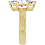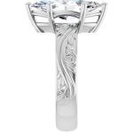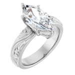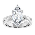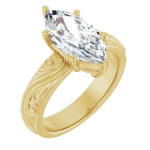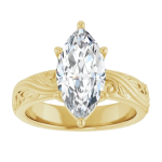The Genevieve ring showcases the center stone of your choosing in an elegant marquise cut, set in a refined basket that allows light to flow beautifully through the stone. A bold 4mm band features intricate, nature-inspired detailing with soft, flowing engravings that add depth and movement from every angle. Sculptural yet romantic, Genevieve is designed to highlight your chosen stone with a distinctive, heirloom-inspired presence.