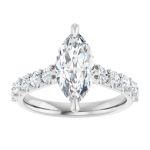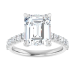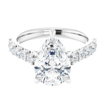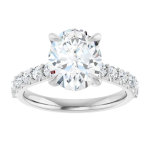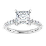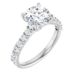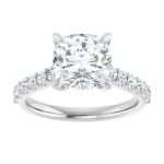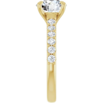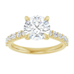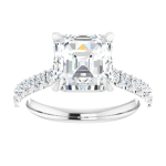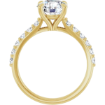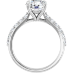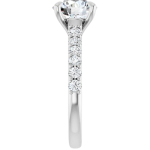The Grace ring features your chosen center stone set in a refined cathedral setting, allowing light to flow beautifully while creating a soft, elevated profile. A 2.5- 3mm pavé band extends halfway around the ring, adding delicate brilliance while maintaining a comfortable, everyday fit. Elegant and effortlessly timeless, Grace is designed to feel both classic and quietly radiant.