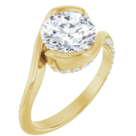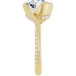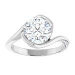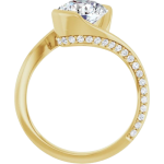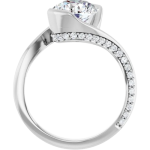 The Halle ring features your chosen center stone in a sculpted half-bezel setting, paired with a fluid bypass design that beautifully showcases the culet and allows light to flow from every angle. A 2.5mm band is accented with delicate pavé diamonds along both sides, adding contrast and dimension to the clean, modern silhouette. Bold and expressive, Halle is a true statement piece designed to feel both elevated and effortlessly unique.
