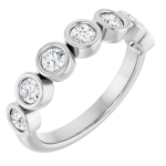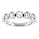The bezel setting gives the band a seamless, low-profile feel while adding durability for everyday wear. Whether worn as an anniversary band, wedding band, or stacked with your favorite pieces, Halo delivers effortless shine in a timeless silhouette.