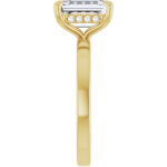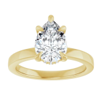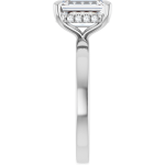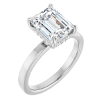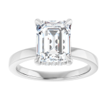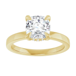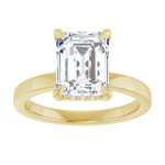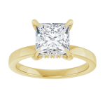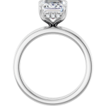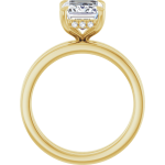 The June ring is a traditional solitaire featuring your chosen center stone secured in elegant claw prongs, complemented by a hidden diamond halo that adds subtle brilliance beneath the surface. A 2.5mm flat band creates a clean, modern profile, while the gallery rail offers both structure and a delicate touch of sparkle. Effortless yet elevated, June is a timeless setting available in a variety of center stone shapes.