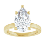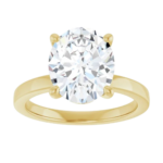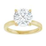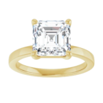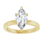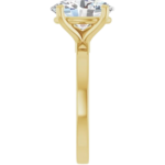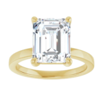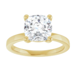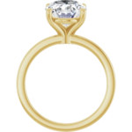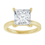 The Jane ring is a timeless gold solitaire, featuring your chosen shape and size center stone secured in refined claw prongs with a supportive gallery rail for added structure. A 2.2mm flat band keeps the silhouette clean, polished, and effortlessly wearable, allowing the center stone to remain the focus. Classic and versatile, Jane is a beautifully understated setting available in a variety of center stone shapes.