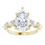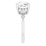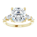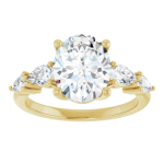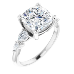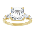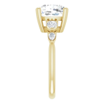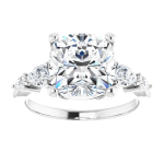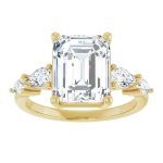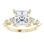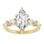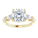 The Lily ring features your chosen center stone secured in refined claw prongs, accented by tapering pear-shaped diamonds along the band that create a soft, flowing silhouette. Set on a delicate 2mm band, the design feels light, balanced, and effortlessly feminine while still offering beautiful dimension and sparkle. Romantic and graceful, Lily is a modern take on a classic three-stone style.