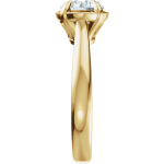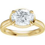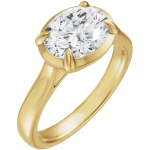 The Noah ring features your chosen center stone in a modern bezel-inspired prong setting, where soft, sculpted prongs meet a smooth metal frame to create a bold, encapsulated look. The rounded, substantial details add a contemporary edge, while the fluid 3mm band keeps the silhouette balanced and effortlessly wearable. Minimal yet statement-making, Noah is a fresh take on the classic solitaire with a distinctly modern feel.