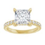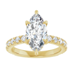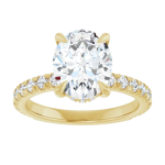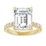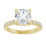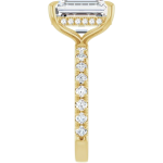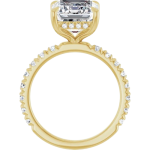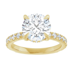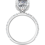 The Nora ring features your chosen center stone set in a classic solitaire setting, accented by a hidden diamond halo that adds brilliance from every angle. A French-set pavé band enhances the sparkle with a clean, continuous line of diamonds, creating a look that is both refined and radiant. Nora is a true staple, designed to shine beautifully in every moment.