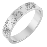 The Rosie band features a softly rounded 4mm silhouette adorned with delicate rose engravings that wrap gracefully around the entire ring. Each floral detail is thoughtfully carved, adding texture, depth, and a romantic, vintage-inspired feel. Feminine yet timeless, Rosie is designed to be worn on its own or layered into a meaningful stack, bringing a touch of nature-inspired elegance to every day.