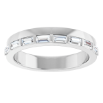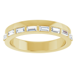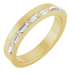 The Rowan band features a refined row of horizontally set baguette diamonds, thoughtfully placed along the top of the ring for a clean, architectural look. Set within a smooth 3mm gold band, the design balances structure and softness, allowing each diamond to catch the light with subtle brilliance. Modern yet timeless, Rowan offers a fresh take on a classic anniversary style. Perfect for stacking or wearing as a sleek standalone statement.