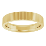 The Sloane band features a clean 4mm flat profile, elevated with finely carved grooves that add subtle texture and dimension. The structured lines catch the light with every movement, creating a modern, understated finish while maintaining a strong, timeless feel. Bold yet minimal, Sloane is designed for everyday wear. Perfect on its own or paired seamlessly with your existing stack.