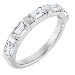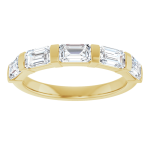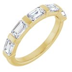 The Soren band features a row of emerald-cut lab-grown diamonds, each secured with clean gold bar settings that create a structured, architectural silhouette. The elongated stones bring a refined linear look, while the gold spacing adds contrast and definition between each diamond.