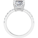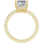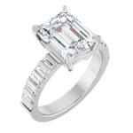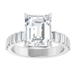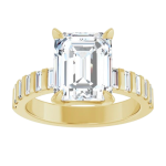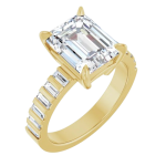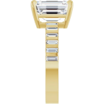 The Zara ring showcases the center stone of your choosing in a radiant or emerald cut, set in a low-profile basket that allows the diamond to sit beautifully close to the finger. Flanked by sleek baguette side stones separated by beautiful gold banding, the design brings a clean, architectural feel while maintaining a sense of understated luxury. A bold 3mm gold band adds weight and presence, perfectly balancing the structured lines of the setting. Modern and refined, Zara is designed to highlight your chosen stone with strong, timeless elegance.